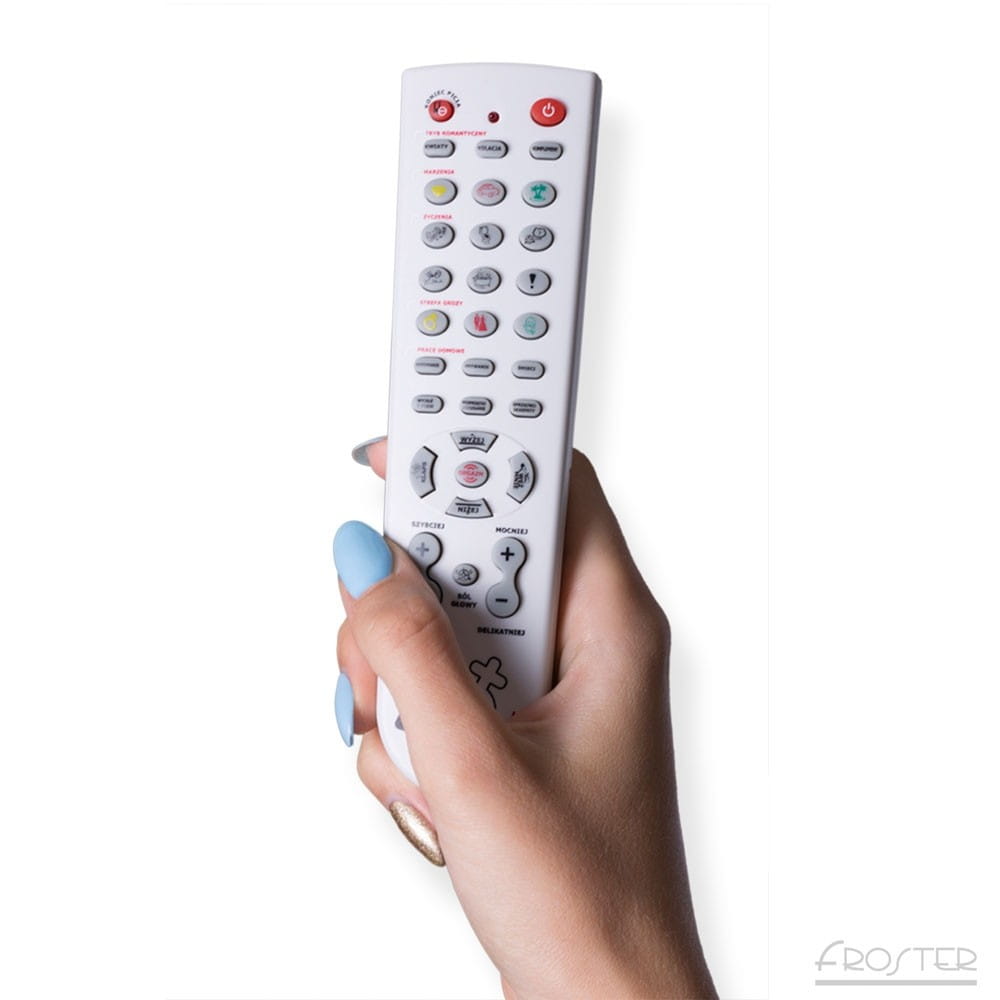 Wystarczy tylko jedno naciśnięcie wybranego guzika, aby mężczyzna poznał swoje obowiązki lub potrzeby ukochanej kobiety. To proste urządzenie szybko i sprawnie rozwiąże wszelkie ewentualne spory dotyczące codziennego życia za pomocą znanej wychowawczej metody: kija ("Posprzątaj mieszkanie" czy "Kotku, oddaj wypłatę") i marchewki ("Może wspólna kąpiel?"). Pilot posiada także kilka pikantnych przycisków, które zapewnią wam doskonałą zabawę przez wiele wspólnie spędzonych wieczorów.Pilot wydaje zmysłowym damskim głosem 33 gotowe komendy. Bardzo dobra jakość nagrania. Podczas odtwarzania dźwięku świeci się czerwona dioda. Szczególnie polecany na wieczory panieńskie.
