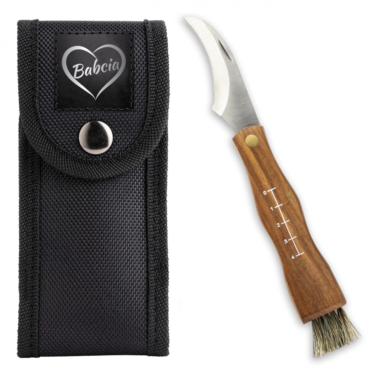 Oto wyjątkowy nóż do grzybów, idealny prezent dla Taty - najlepszego grzybiarza na świecie! Ergonomicznie wyprofilowaną drewnianą rękojeść, zapewnia komfort podczas długich wypraw do lasu. Zakrzywione ostrze ze stali nierdzewnej ułatwia precyzyjne cięcie grzybów, a nadrukowana miarka - ocenę zdobyczy.