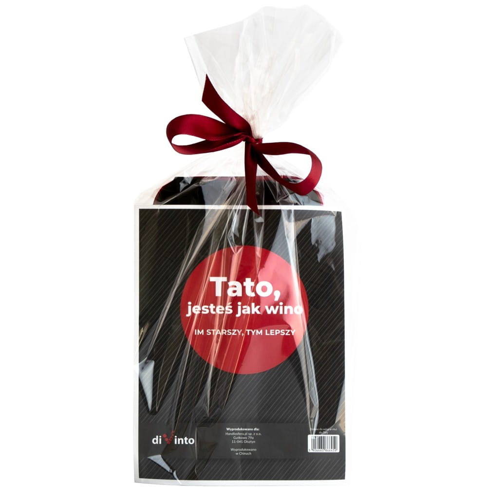 Gotowy do wręczenia na prezent bez konieczności dodatkowego pakowania. Napis na produkcie: Tato, jesteś jak wino - im starszy, tym lepszy. Najlepszy Tata na świecie. Produkt w polskiej wersji językowej.